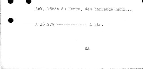 //// Ack; kände du Herre, den darrande hand... //// ^ ^ A 16:275 ----4 str. //// - //// t . //// RA //// t //// t'' : , _ _____ ////