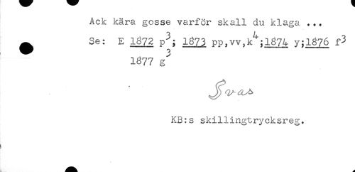 //// Ack kära gosse varför skall du klaga ... //// ^ Se: E 1372 p^; 1373 pp,vv,k^;l674 y;l376 f3 //// 1377 g^ //// ... v ^ //// KB:s skillingtrycksreg. ////