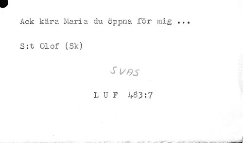 //// Ack kära Maria du öppna för mig ... //// S:t Olof (Sk) //// L U F 4^3:7 //// <- A . .... . . - .. - . ;____- .. 11! . ____. - * ** ////