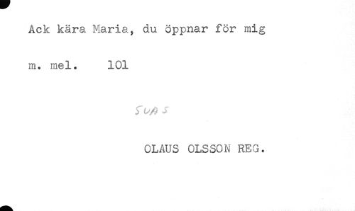 //// Ack kära Maria, du öppnar för mig //// m. mel. 101 //// OLAUS OLSSON REG. ////