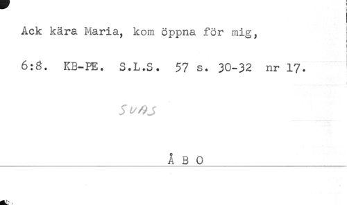 //// ! //// Ack kära Maria, kom öppna för mig, //// ! //// 6:3. KB-PE. S.L.S. 57 s. 30-32 nr 17. //// I //// _ÅBO_ ////