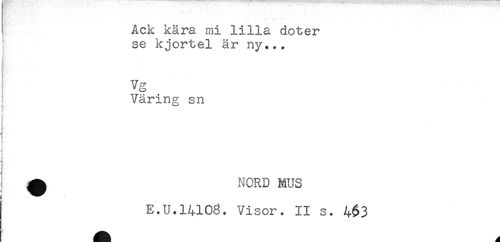 //// ! Ack kära mi lilla doter //// se kjortel är ny... //// VP- //// v o //// Väring sn //// ! //// ' //// ) ^ NORD MUS //// j E.U.14108. Visor. II s. 4$ 3 ////