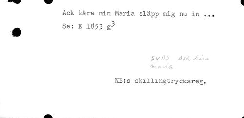 //// Ack kara mm Maria släpp mig nu in ... //// Se: E 1^53 g^ //// - -H H //// T //// KB:s skillingtrycksreg. //// __^^ ^ ////