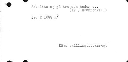 //// ^ Ack lita ej pa tro och heder ... //// (av J.H4'Chronvall) //// T //// Se: E 1899 g^ //// KB:s skillingtrycksreg. ////