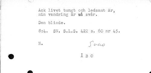 //// Ack livet tungt och ledsamt är, //// min vandring är wå svår. //// F //// Den blinde. //// SN. S.L.S. 422 s. 60 nr 45. //// ! //// N* //// ] ^^ ////