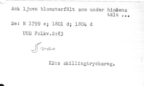 //// RCK ljuva Diomsterialt som under himlens //// tält ... //// Se: N 1799 e; 1801 d; 1804 d //// UUB Folkv.2:83 //// J ^^^ //// < //// KB:s skillingtrycksreg. ////