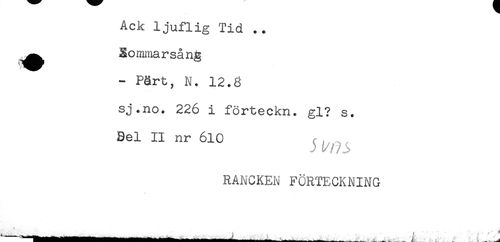 //// Ack ljuflig Tid .. //// ^^ Sommarsång //// - Pärt, N. 12.8 //// sj.no. 226 i förteckn. gl? s. //// Bel II nr 610 ^ ^^ //// RANCKEN FÖRTECKNING //// 1.1I,' - __, j < A- ' ' //// ^^^^^^^^^^ ' - --A- . -- * '.-.... - .JK.- ',- . Å -.-ä-i. ////