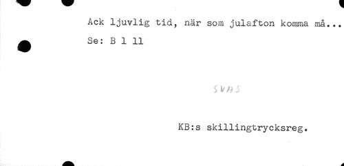 //// Ack ljuvlig tid, när som julafton komma må... //// ^ Se: B 1 11 //// KB:s skillingtrycksreg. ////