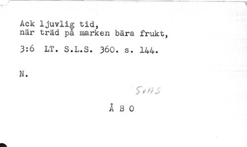 //// Ack ljuvlig tid, //// när träd på marken bära frukt, //// 3:6 LT. S.L.S. 360. s. 144. //// N. //// ÅBO ////
