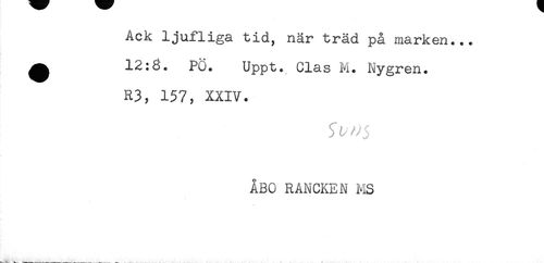 //// Ack ljufliga tid, när träd på marken... //// ^ 12:8. Pö. Uppt. Clas M. Nygren. //// R3, 157, XXIV. //// ÅBO RANCKEN KS ////