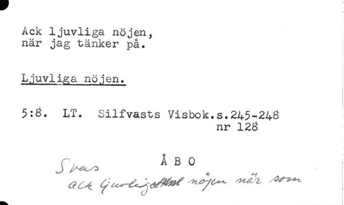 //// Ack ljuvliga nöjen, //// när jag tänker på. I //// i //// . //// Ljuvliga nöjen. //// . j //// 5:8. LT. Silfvasts Visbok.s.245-248 //// nr 128 //// p, ÅBO //// j /^o ////