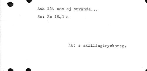 //// Ack låt oss ej använda... //// Se: Zz 1840 a //// . //// KB: s skillingtrycksreg. ////
