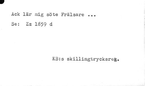 //// f //// < //// < //// Ack lär mig söte Frälsare ... ! //// i //// i //// Se: Zz 1S59 d //// t //// t //// KB:s skillingtrycksreg. //// t //// ! //// < //// ! //// - f ////