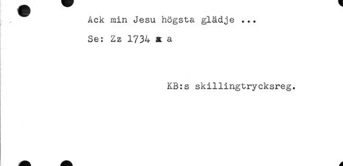 //// Ack min Jesu högsta glädje ... //// Se: Zz 1734 x a //// KB:s skillingtrycksreg. ////