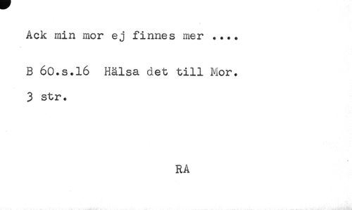 //// Ack min mor ej finnes mer .... //// B 60*s.l6 Hälsa det till Mor. //// 3 str. //// RA ////