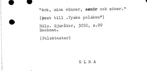 //// "Ack, mina vänner, senör och söner." //// (pext till .Tyska polskan") //// ^ Hals. Bjuråker, 3250, s.99 //// Ba c kman. //// i (Polsktexter) //// U L M A //// ) ////