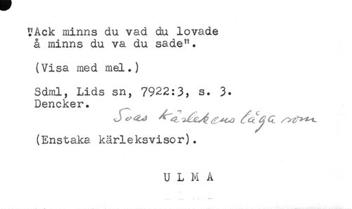 //// UAck minns du vad du lovade //// å minns du va du sade*'. //// (Visa med mel.) //// Sdml, Lids sn, 7922:3, s. 3. //// Dencker. //// (Enstaka kärleksvisor). //// U L K A ////