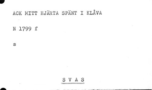 //// ACK MITT HJÄRTA SPÄNT I KLÅVA //// N 1799 f //// s //// S V A S ////