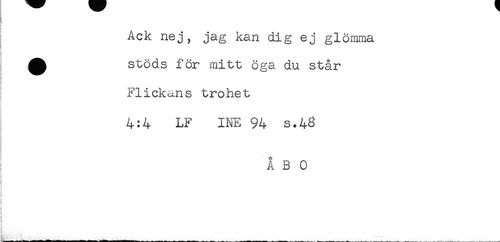 //// Ack nej, jag kan dig ej glömma //// ^ stöds för mitt öga du står //// Flickans trohet //// 4:4 LF INE 94 s.48 //// ÅBO //// ; //// ! //// ' //// ! //// i //// L___,___.____ ////
