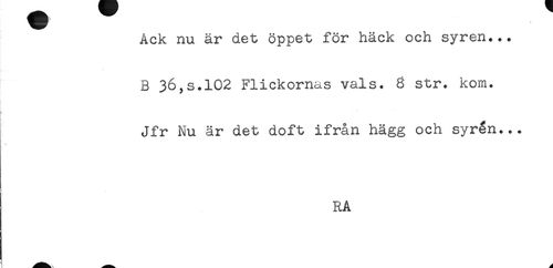 //// Ack nu är det öppet för häck och syren... //// B 36,s.102 Flickornas vals. 8 str. kom. //// Jfr Nu är det doft ifrån hägg och syrén... //// RA ////
