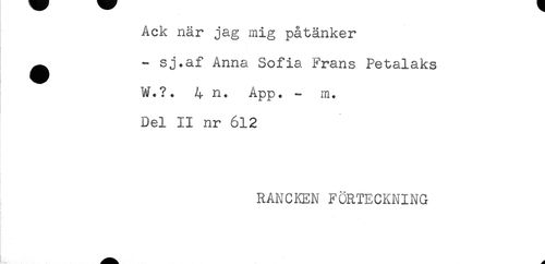 //// Ack när jag mig påtänker //// ^ - sj.af Anna Sofia Frans Petalaks //// W.?. 4 n. App. - m+ //// Del II nr 612 //// RANCKEN FÖRTECKNING ////
