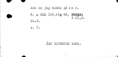 //// Ack om jag bodde på en ö. //// ^ R. = SLS 126,l6y R6, R8332x //// ^ 2 C-1,2. //// Ko.2. //// } //// s. 7. //// ÅBO SJÖBERGS SAML. //// ^^ . ji /^K ////