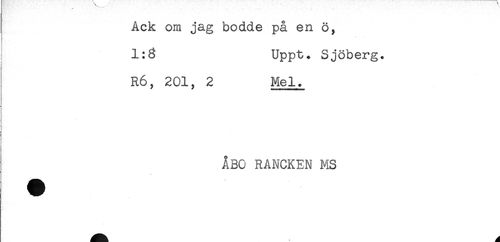 //// Ack om jag bodde pa en ö, //// 1:8 Uppt. Sjöberg. //// : //// R6, 201, 2 Mel. //// ÅBO RANCKEN MS ////