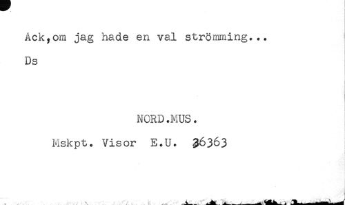 //// Åckyom jag hade en val strömming... //// Ds //// NCRD.MUS. //// Mskpt. Visor E.U. ^6363 //// I //// ^ - ^^L.. * ////