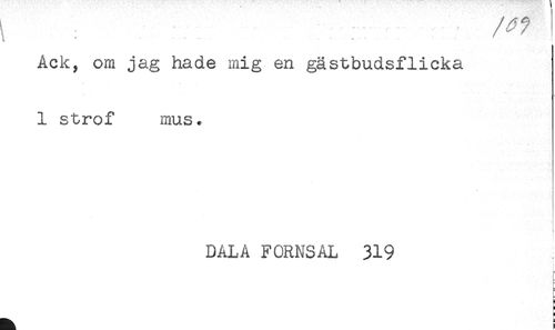 //// \ . - ^ //// Ack, om jag hade mig en gästbudsflicka //// 1 strof mus. //// DALA FORNSAL 319 //// f ////