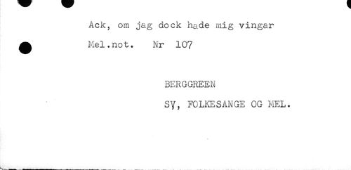 //// Ack, om jag dock hade mig vingar //// ^ Mel.not. Nr 107 //// BERGGREEN //// SY, FOLKESANGE OG MEL. ////