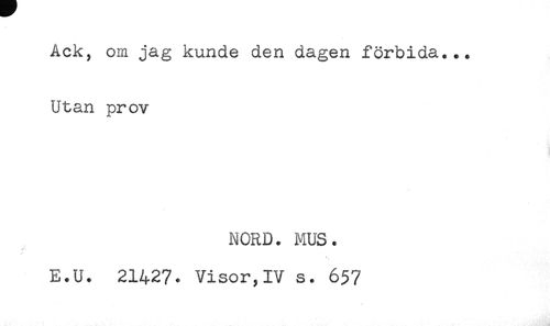 //// Ack, om jag kunde den dagen förbida... //// Utan prov //// NORD. MUS. //// E.U. 21427. Visor,IV s. 657 ////