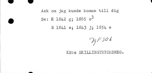 //// Ack om jag kunde komma till dig //// ^ Se: E 1842 g; 1865 o^ //// N 1641 e; 1643 j; 1^54 e //// ] //// i //// t //// ! //// KB:s SKILLINGTRYCKSREG. //// i - //// t //// i, ////