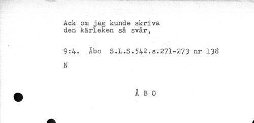 //// Ack om jag kunde skriva //// den kärleken så svår, //// 9:4. Åbo S.L.S.542.s.271-273 nr 13^ //// N //// ^ ÅBO //// < ////