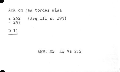 //// Ack om jag tordes wåga //// s 252 (Art? III s. 193) //// - 253 //// D 11 //// ARW. MS KB Vs 2:2 //// ' '' / ////