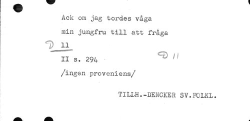 //// Ack om jag tordes våga //// min jungfru till att fråga //// D 11 //// II s. 294 //// /ingen proveniens/ //// < //// * //// TILI.H.-DENCKER SV.FOLKL. ////