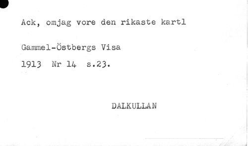 //// < //// Ack, omjag vore den rikaste kartl //// Gammel-östbergs Visa //// 1913 Nr 14 s.23* //// < //// ! //// i //// < //// DALKULLAN //// f //// * < ^ //// - ---1* ////