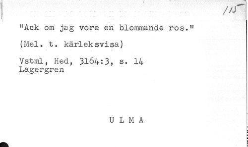 //// K ^ " ' ' ....." * "' . j //// ^Ack om jag vore en blommande ros.^ //// (Mel. t. kärleksvisa) //// h //// Vstml, Hed, 3164:3, s. 14 //// Lagergren //// U L M A //// 5 //// ä //// ) //// ! ////