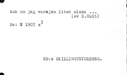 //// Ack om jag vorejen liten siska ... //// (av S.Hult) //// r //// Se: E 1907 z^ E //// s //// r //// ^ //// { //// ! //// ) //// ^ //// k //// $ //// t //// f- //// KB:s SKILLINGTRYCKSREG. //// i //// t ////