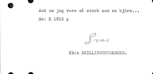 //// Ack om jag vore så stark som en björn... //// Se: E 1652 p //// * //// . //// KB:s SKILLINGTRYCKSREG. ////