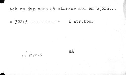 //// Ack om jag vore sa stärker som en björn... //// A 322:5 ---- 1 str.kom. //// RA //// B . * ^ ////
