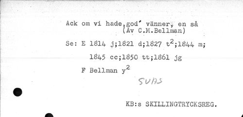 //// i - ' : //// - ' ....... ' ' - ....- - - - - //// [ . ' ' . - ' ' //// Ack om vi hade,god" vänner^ en så //// (Av C.M.Bellman) //// - « * * //// Se: E 1814 j;l821 d;l827 t^;l844 //// \ ^ * * //// 1845 cc;l850 tt;l86l jg //// F Bellman y^ ////