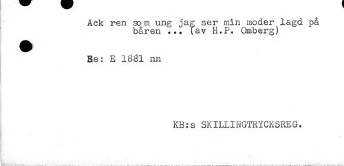 //// . . //// Ack ren som ung ja^ ser min moder lagd på //// båren ... fav H.P. Omberg) //// H M //// Se: E 1881 nn //// t //// i //// i //// KB:s SKILLINGTRYCKSREG. //// * . * * //// ! - ' //// 4 - . * //// ..-7. , . . . ... ; . ..., „ .