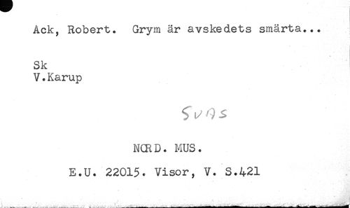 //// Ack, Robert. Grym är avskedets smärta... //// Sk //// V.Karup //// N(RD. MUS. //// E.U. 2201$. Visor, V. S.421 //// ____- ^ ^ -. .rr^lfH^** //// _____ ... ____åi-MM. i - ---- ---- ////