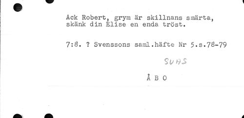 //// Ack Robert, grym är skillnans smärta, //// skänk din Elise en enda tröst. //// 7:8. ? Svenssons saml.häfte Nr 5.s.78-79 //// ÅBO ////