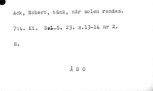 //// Ack, Robert, tänk, när solen randas. //// 7:4. Ki. SsL.S. 23. s.13-14 nr 2. //// N. //// ÅBO ////