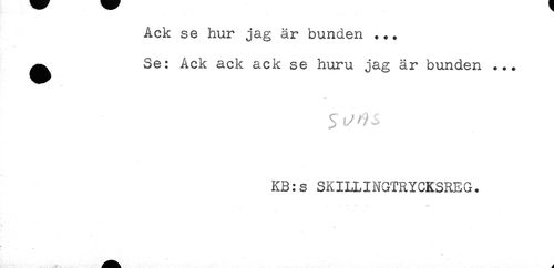//// Ack se hur jag är bunden ... //// ^ Se: Ack ack ack se huru jag är bunden ... //// KB:s SKILLINGTRYCKSREG. ////