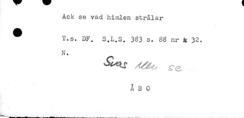 //// Ack se vad himlen strålar //// ^ T.s. DF. S.L.S. 383 s. 88 nr R 32. //// N. //// ÅBO ////