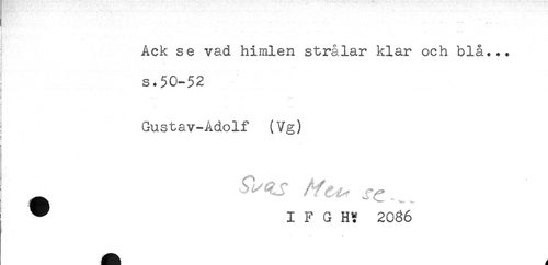 //// Ack se vad himlen strålar klar och blå... //// t //// 4 * //// j //// ! //// S.50-52 //// i //// ^ . . <- //// Gustav-Adolf (Vg) //// ! //// - //// * I F G HY 2086 ////