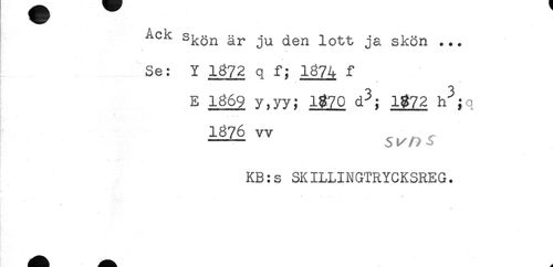 //// Ack Sk3n är ju lott ja skön ... //// Se: Y 1872 q f; 1874 f //// E 1869 y,yy; 1%Z0 d^; 1%72 //// 1876 vv ^ , - //// * //// KB:s SKILLINGTRYCKSREG. //// ? //// w ////