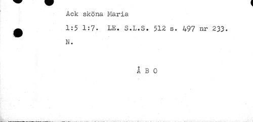 //// Ack sköna Maria //// ^ 1:5 1:7. LE. S.L.S. 512 s. 497 nr 233. //// N. //// ÅBO //// . i ////